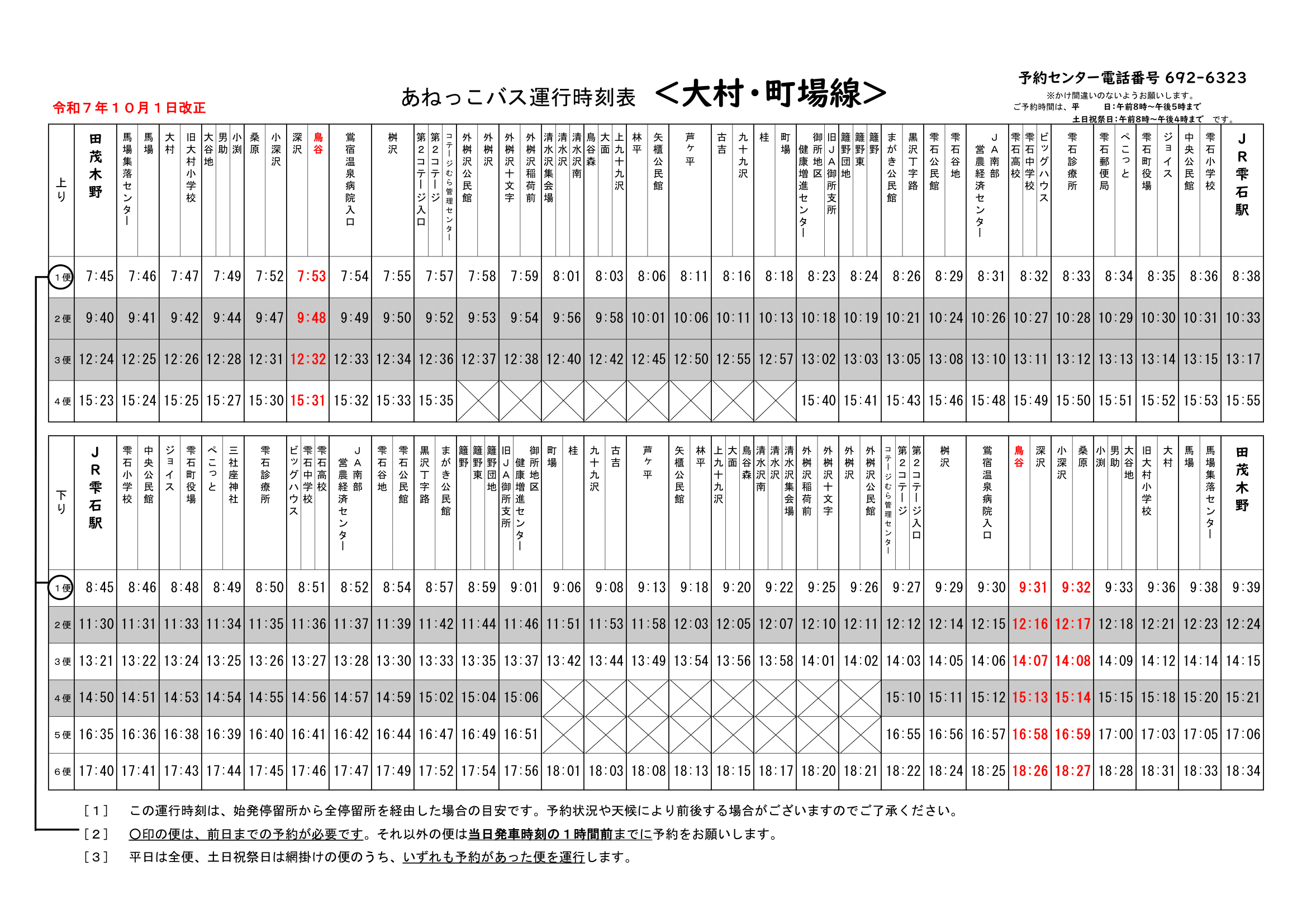 時刻表(令和7年 10月1日改正)